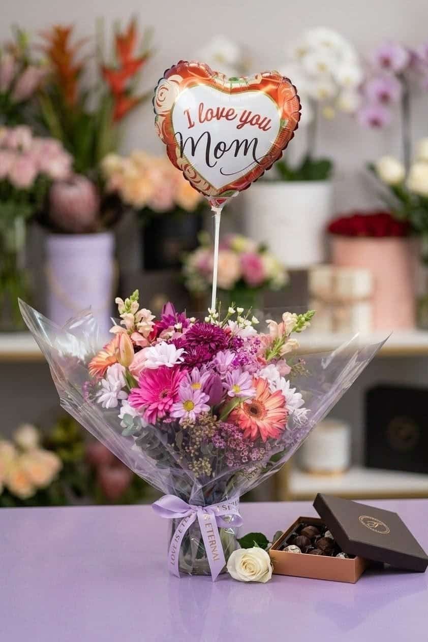 Treat someone special to the ultimate surprise with our “Sweet Moments” set. This vibrant arrangement features a cheerful mix of orange gerberas, purple daisies, and soft pink alstroemerias. To make it even more memorable, it comes paired with a deluxe box of gourmet chocolates.